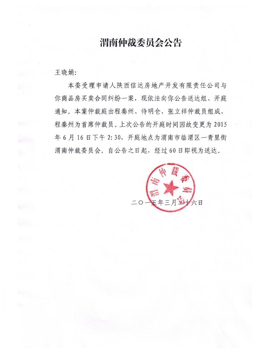 〔2014〕渭仲字第55號(hào) 公告