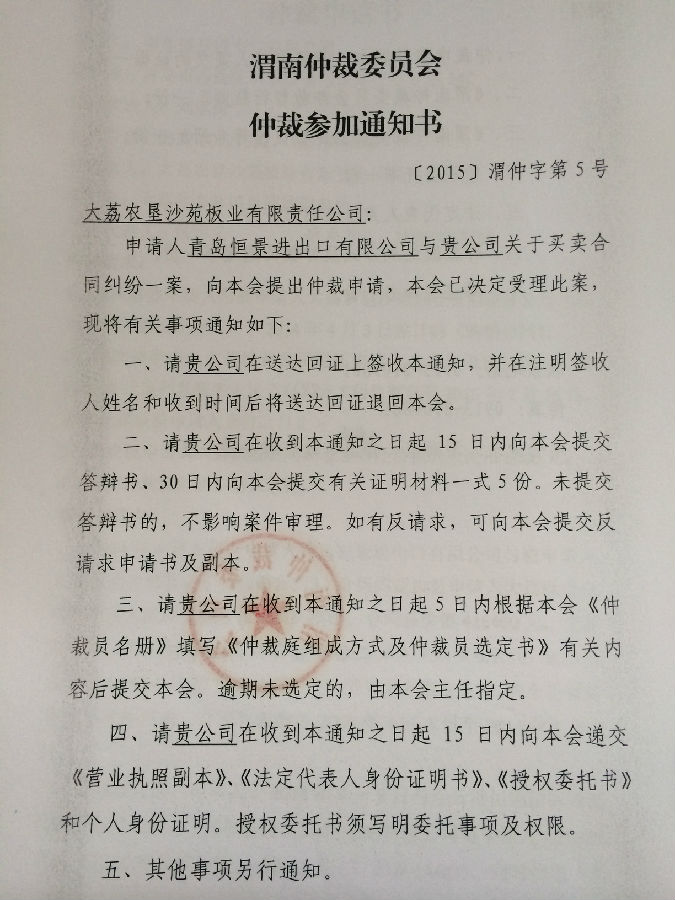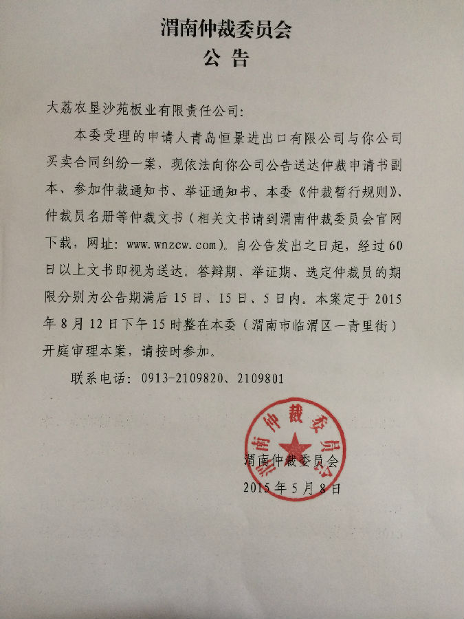 [2015]渭仲字第5號案件公告